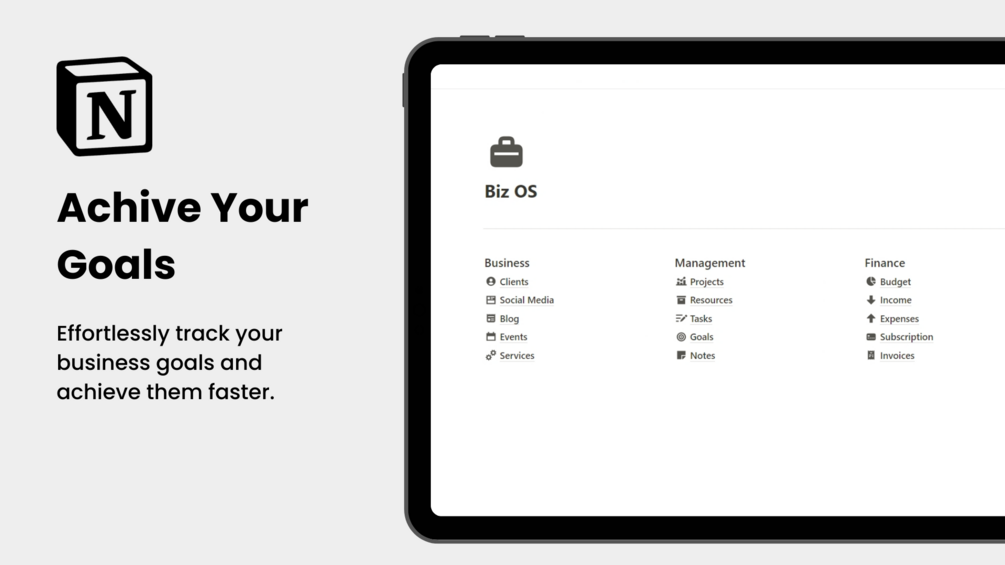 With Biz OS, you can effortlessly organize and track your business: projects, clients, invoices, and finances—all in one place. Say goodbye to scattered spreadsheets and disparate tools. This Template empowers you to focus on what matters most: growing